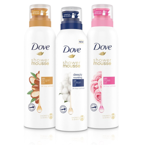 • Bestaat uit drie heerlijke soorten Dove shower mousse