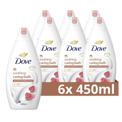 Dove Soothing Caring Bath Badcrème - Amandelolie & Hibiscus - Voordeelverpakking - 6 x 450ml