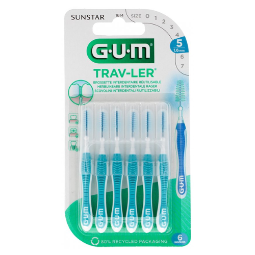 Gebruik de GUM Trav-Ler ragers Blauw 1,6 mm voor het reinigen tussen tanden en kiezen. De GUM Trav-Ler ragers zorgen voor een optimale plaqueverwijdering dankzij de driehoekig gevormde borstelharen. De ragers zijn gecoat met chloorhexidine om de rager tot 14 dagen antibacterieel te houden.