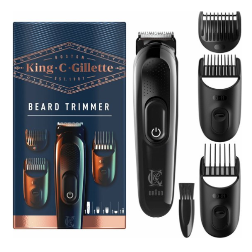 Het ultieme resultaat van meer dan een eeuw innovatie en expertise, en de enige serie die de naam van de oprichter van het bedrijf Gillette heeft: King C. Gillette. Met drie verwisselbare kam-opzetstukken voor alle baardstijlen: stoppels (1 mm), korte haartjes (3-11 mm) en lange haartjes (13-21 mm) en langdurig scherpe messen. De King C. Gillette baardtrimmer is ontworpen om u te helpen uw perfecte look te bereiken, zodat u elke dag helemaal uzelf kunt zijn