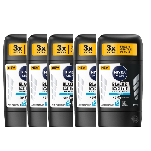 NIVEA Black & White Fresh Antiperspirant Stick - voordeelverpakking - 5 x 50ml