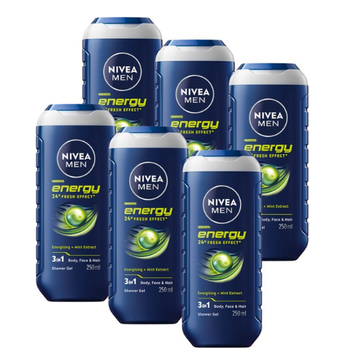 NIVEA MEN Energy Douchegel - 3-in-1 Shower Gel Met Mintextract - Shampoo - Voordeelverpakking - 6 x 250 ml