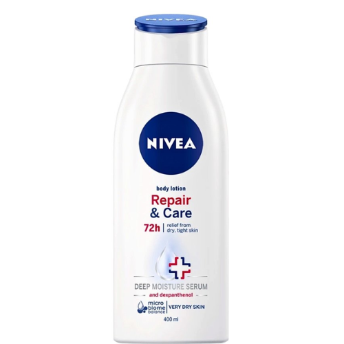 Geef je huid de verzorging die het verdient met de NIVEA Repair & Care Body Lotion, speciaal ontwikkeld voor de zeer droge huid. Deze bodylotion hydrateert intensief en helpt het trekkerige gevoel te verlichten. De formule bevat een combinatie van verzorgende ingrediënten die de huid zacht maken en helpen het natuurlijke huidmicrobioom in balans te houden, waardoor de huid gezond blijft en zich herstelt.