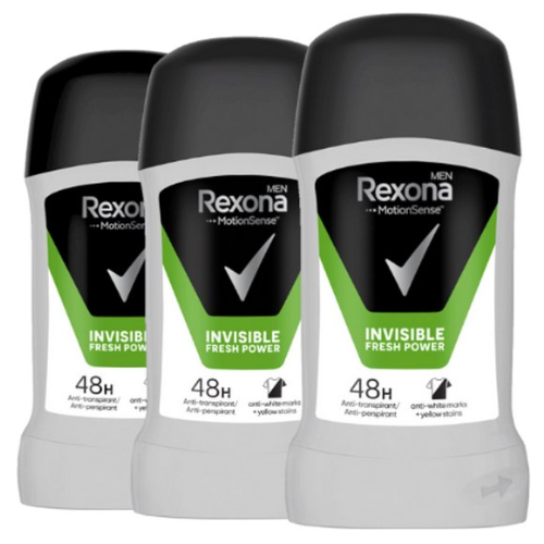 Rexona Men Invisible Fresh Power Deodorant Mannen - 3 x 50 ml - Deodorant Stick - 7 Voudig Bescherming - Deodorant Man Voordeelverpakking