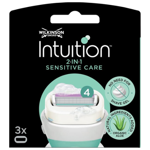 Wilkinson Intuition Sensitive Care bevat drie scheermesjes voor het scheerapparaat Wilkinson Intuition Sensitive Care. Deze mesjes hebben een vijf koppige basis waardoor uw gladder scheert. Ook zorgt de drievoudige werking voor bescherming van de huid. Verrijkt met verzachtende aloe vera en vitamine E, ter verzorging van de gevoelige huid.